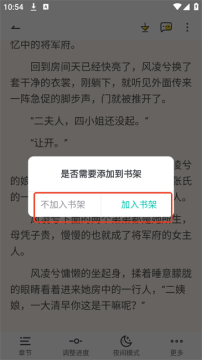 4.在点击返回的时候会提示是否需要添加书架,可根据对这本小说的感兴趣程度自行选择添加与否(需登录使用)