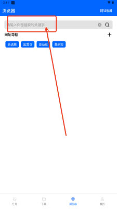 2.点击下方的【浏览器】,进入后点击上方的搜索框;