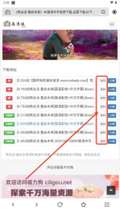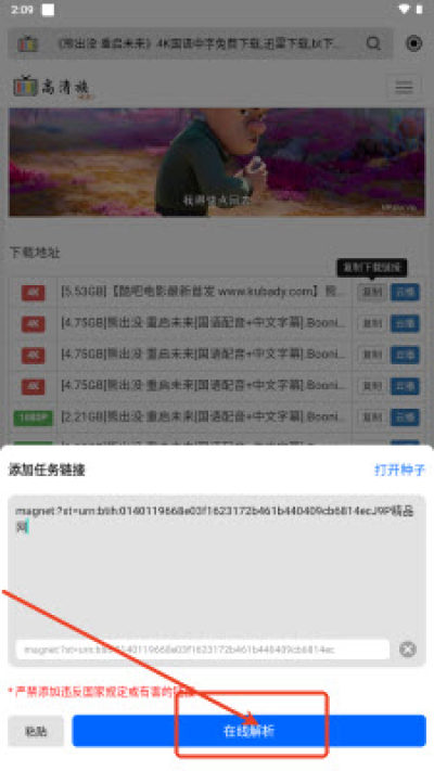 3.在其中输入搜索磁力的关键词,点击搜索得到结果;