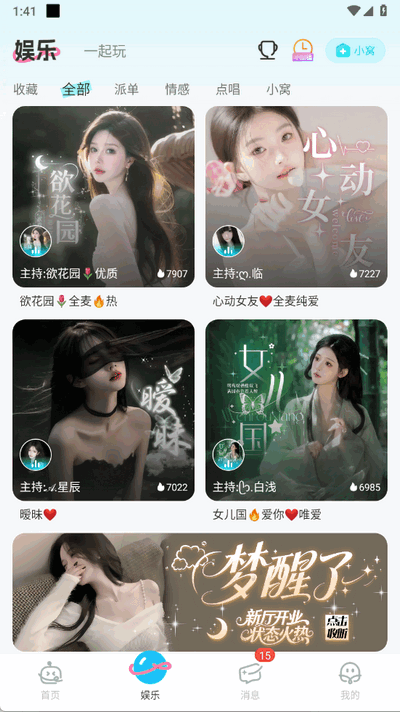 3.让您的生活不再枯燥,可以和一群朋友一起玩耍。创建自己的朋友圈,每个人都有自己的好声音。聊天,听歌,互动小游戏,24小时狂欢不停。
