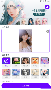 3、通过简单的点击和拖拽,即可生成自己想要的图像作品,你可以选择自己喜欢的艺术风格。