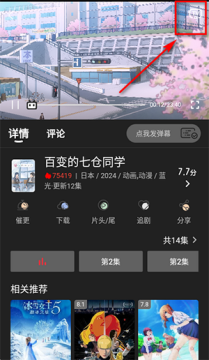 1、打开要投屏的影视动漫剧,播放时右上角有个tv按钮。