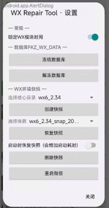 📸 WX环境快照功能 支持创建、恢复、删除微信运行环境快照,便于备份和还原。
