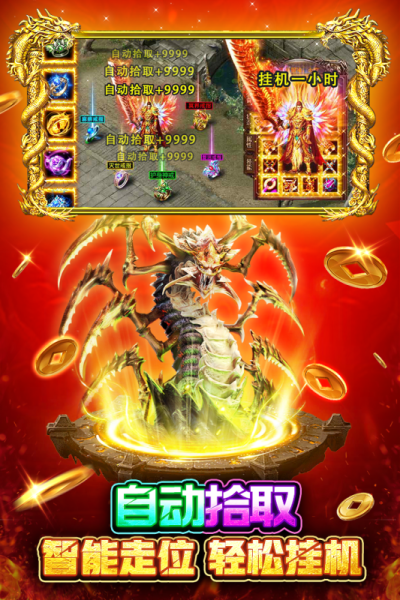 2.充值18元直升10转,领取高阶生肖和龙魂材料,核心养成,踏上成神之路。3.充值38元直升15转,领取绝版时装屠龙神甲,50攻速,刀刀烈火暴力输出。
