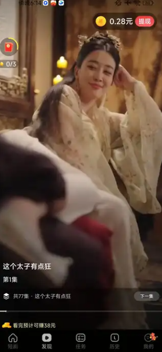 2、刷短剧就可以在线得红包,每看5个短剧就可以得到1个红包。