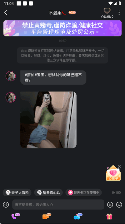 用户可以浏览在线异性用户的详细信息,选择感兴趣的对象进行即时私聊。这种玩法不闲聊直接约,注重高效和真实,让用户能够更快地找到志同道合的朋友或恋人。