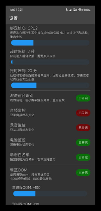 后台自由:即白名单,确保应用无论何时都能自由运行,不会被冻结。