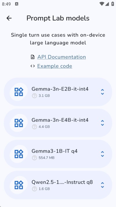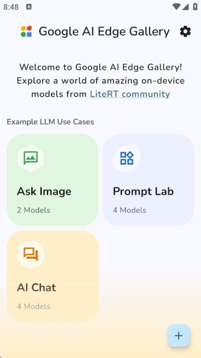 目前,AI Edge Gallery 仅通过 GitHub 提供下载,需手动安装 APK 文件。应用主界面提供了 “图像问答” 和 “AI 聊天” 等 AI 任务与功能的快捷入口,点击某一功能后,会显示适合该任务的模型列表,如谷歌的 Gemma 3n。用户可通过内置的 “Prompt Lab” 启动由 AI 模型完成的单次任务,还可利用其中的多种任务模板和可调节参数,微调模型表现。