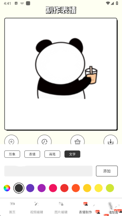 1、通过拖拽素材,利用形象、表情、画笔、文字等元素快速编辑制作表情。