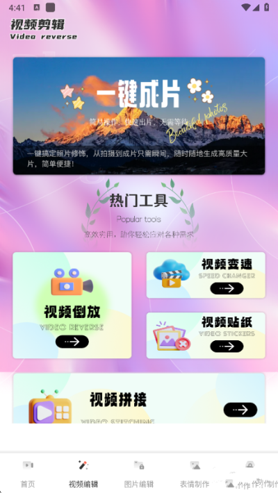 1.有视频倒带、视频速度、视频贴纸等工具,支持多样化的创作。