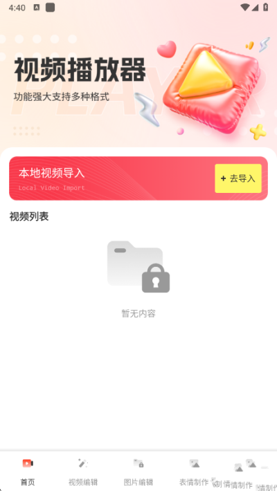 3、不仅有创作功能,还具备视频播放功能,可导入本地视频进行高清播放。