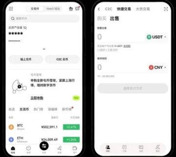 (1) 首先,启动okx应用并浏览至首页,随后轻触“C2C买币”板块,进而点击“出售”功能键。在此界面中,您可以自由选择想要出售的数字资产种类。