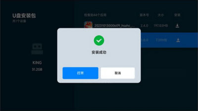 答:请确认电视已开启允许安装未知来源的软件,并确保U盘格式正确。