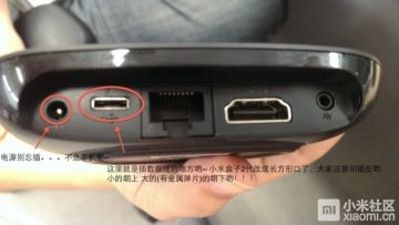 1.用电源线给小米盒子接通电源(圆形插孔),用安卓手机数据线把小米盒子(方形插孔)与电脑USB接口相连;(请保持盒子开机状态,很多人说连接不上电脑,其实就是没有接通电源和开机)