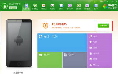 2.电脑上安装好360手机助手(其他手机助手腾讯手机管家等皆可)打开360手机助手,点击立即连接;