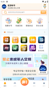 星游账号交易平台app最新版是一款专业的游戏账号交易平台软件,软件覆盖了热门的手游端游的货币账号交易,玩家可以根据自己的需求,在平台上自由交易自己的账号和道具,自由的筛选自己的需求,还提供代售和中介的安全担保,专业的交易流程保证买卖双方的利益,需要的小伙伴快来下载!