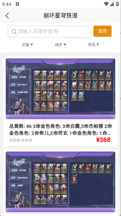 登录星游平台APP,找到您需要购买的游戏,进入游戏板块后挑选您喜欢的商品..