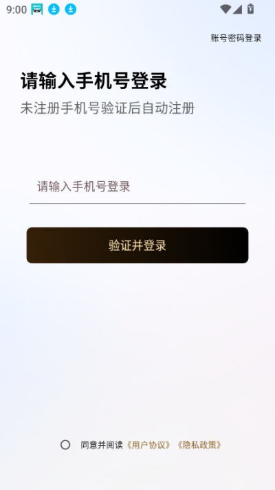 4、进入登录界面,可以直接手机号验证登录,未注册过的手机号自动注册为新账号。
