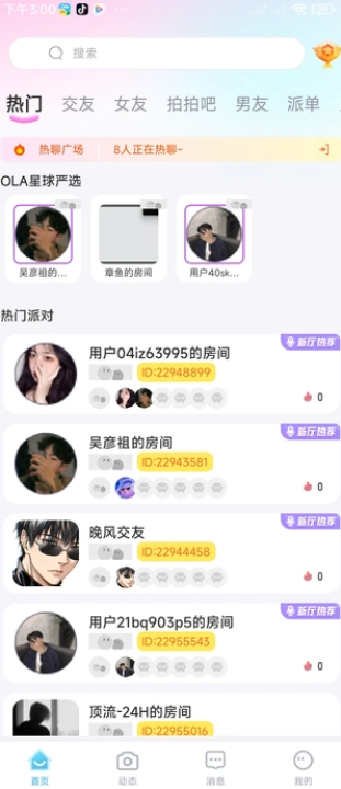 OLA星球app是一款非常不错的语音聊天手机软件,这里的任意聊天操作方式简单无比,让大家都可以直接去开启聊天互动,不仅可以体验到全面的互动精彩,还可以让你感受到更多的趣味,每次都是可以使用声音来表达自己,丰富的话题探讨有趣好玩,语音聊天方式无比的容易。