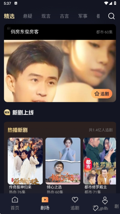4、操作便捷:界面设计简洁,功能布局清晰,用户可轻松上手使用,快速找到想看的短剧。设有“剧场”页面,将短剧按题材分类,方便用户根据兴趣选择;在主界面顶部的搜索栏中,输入想要观看的短剧名称或相关关键词,就能快速定位目标内容。