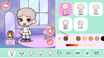 2、接着点击空白人物后即可开始创建,首先就是调整人物身形和肤色。