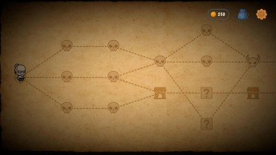 1、游戏整体的目标是通关,走通三张地图,在地图上根据不同的图标确定关卡类型,路线限制前进选择。