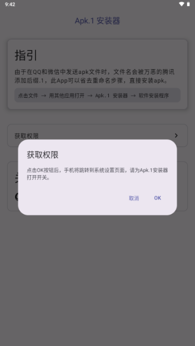 由于在QQ和微信中发送apk文件时,文件名会被万恶的腾讯添加后缀.1,此App可以省去重命名步骤,直接安装apk。