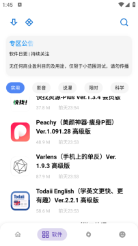 2、进入软件板块,有很多的软件资源分类,包括实用、影音、说漫等类型。