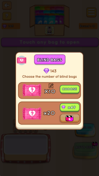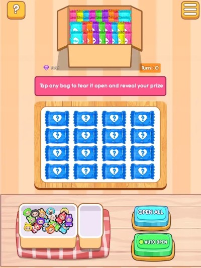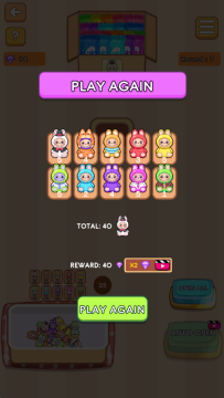 3、当你开启到目标或者成对的labubu时,都将会获得新的盲袋,让你可以继续开启,直到没有盲袋可开为止。