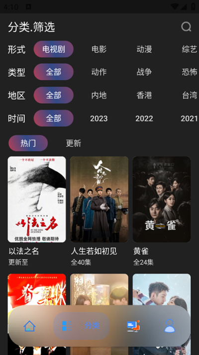 按照电影、电视剧、综艺、动漫等主流类型分类展示,清晰明了。