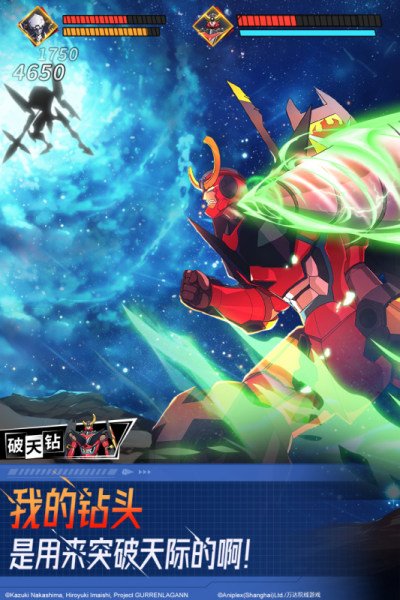 “用你的钻头突破天际!!” 《天元突破红莲螺岩》首款手游登场! !TRIGGER全面监修,忠实还原经典剧情,带你重温钻头的浪漫。和红莲团一起,冲向天空,冲破宇宙吧!《天元突破红莲螺岩》手游由万达院线游戏与安尼普(上海)文化艺术有限公司、Klab 合作推出,这一次,热血冒险激燃战斗,有了你的参与!