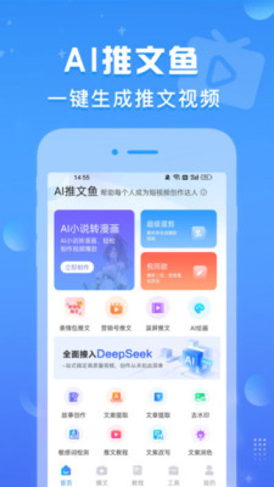 ai推文鱼软件是一款安卓手机免费小说推文创作平台,用户可以选择自己感兴趣的内容进行浏览,包含视频、图片、文案一键处理操作,还可以分享给更多好友一起用,使用起来非常方便!对软件感兴趣的话不妨点击下载试试!