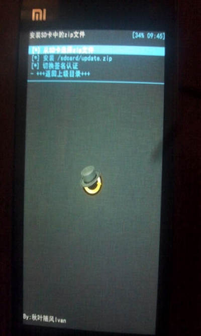 3,REC刷好了当然就可以开始刷秋大的原生4.3 了(提前准备一个卡刷的完整版小米zip包,狠重要!!!),记得把原生包改名:update.zip,然后进入REC模式(不知道怎么进去的我教你,两种方法:1,点系统更新,继续三横线键,选择进入REC模式。2,关机状态下,长按音量+和电源键,屏幕亮了就进去了)。进去以后找到高级功能,开启真实双系统。