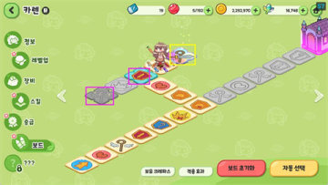 有发光粒子效果的格子:消耗金色或紫色蜡笔涂亮后会获得属性加成,其它所有坨子也会获得该属性相同的加成。(即使涂亮格子的坨子不编入队伍参与战斗,其它坨子也会有加成)