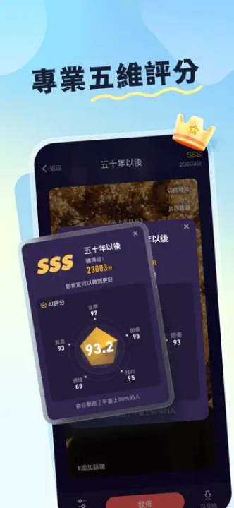 1、专业唱歌评分系统,从音准、节奏、情感、气息、技巧为作品打分。