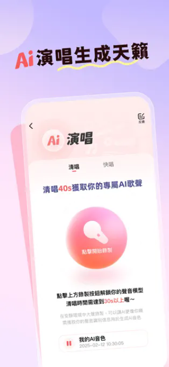 AI演唱-录制40秒原声,AI自动用你的音色生成专业级音乐作品,K歌之王就是你!