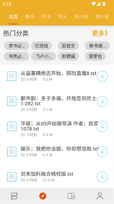 2、进入发现页面,可以直接点击书籍旁边的下载按钮进行下载