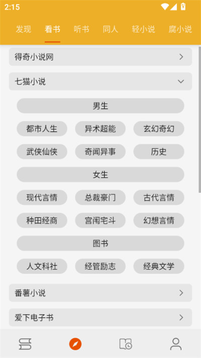 1、在本站下载安装软件,进入主页在发现页面可以看到海量书源