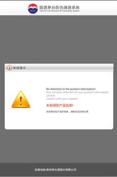 5.如果待测茅台酒查询失败,则显示如下图所示的信息: