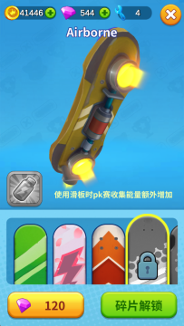 2、随后我们就可以看到众多滑板,选中喜欢的点击装备,或者购买解锁新滑板。