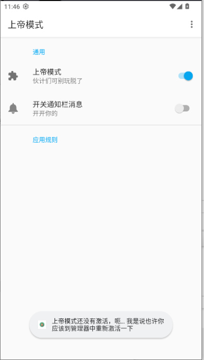 (之前的版本采用的是ContentProvider模式所以每次被编辑的app都需要向上帝读取规则信息而这个版本采用的是INotify机制所以上帝运不运行就不重要了上帝客户端主要用来管理规则 注意现在没事不要清除上帝数据!!!)