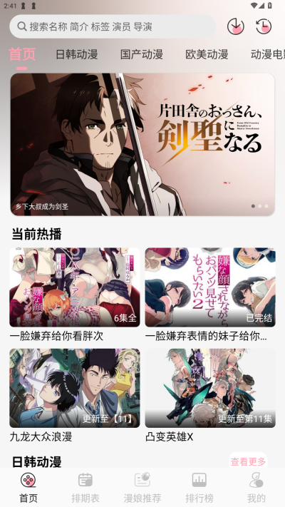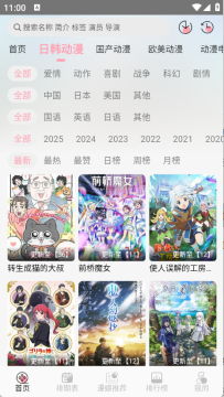 2、首页顶部栏汇集了很多的动漫资源,涵盖了日漫、韩漫以及国产动漫等。