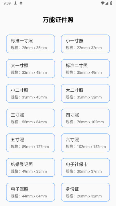 选择你需要的证件照规格