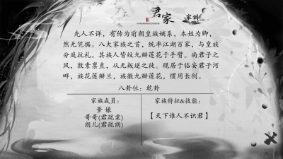 家人:朗儿(男,14) 琳琅(女,17) 扶笙(女,17);