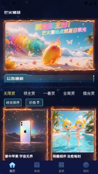 1、在首页中有无限赏、领无赏、一番赏、全局赏以及擂台赏等类别;