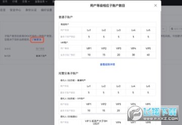 5. 根据不同的用户等级,您可以创建子账户的数量是不一样的,点击【了解更多】可以查看不同用户等级可以创建的子账户数目,普通用户可以创建5个子账户。