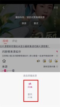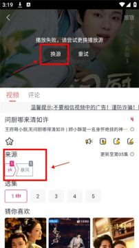 1.进入软件找到喜欢的作品点击进入播放页面后如果出现播放失败的情况,可点击播放页中间的“换源”或是下方的“来源”