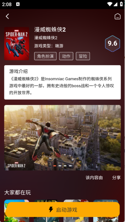 5、点开想玩的游戏进入详情页点击“启动游戏”即可。