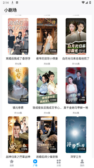 2、进入追剧广场页面,可以看到海量热门短剧作品