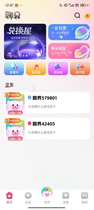 聊界派对app是一款手机最新交友平台,广大用户可以在这里寻找合适的聊天对象,支持一对一私密聊天,超多趣味派对社交玩法等你开启,满足用户的不同社交需求,对软件感兴趣的话不妨点击下载试试!